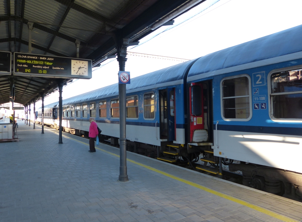 Dnes jsem opět z nouze využil ČD, abych se z Otrokovic rychle dostal do Olomouce. Takže rychlík s hrdým názvem Jan Ámos Komenský, který měl konečnou v Praze. Naštěstí jsem jel jen do Olomouce, protože v kupé pro osm osob byla dost zima. Nebylo zcela plné, takže ani živočišné topéní nefungovalo, což by na má záda nebylo zrovna moc dobré. Plezgaňu či duchnu sebů nevozím. Jízdné 77,-Kč, do Otrokovic trolejbusem za 18,-Kč, celkem 95,-Kč. Z Olomouce jsem využil nejmenovaného dopravce, který mě v kombinaci vlak - autobus zavézl z Olomouce do Zlína skoro až před dům za 28,-Kč (Jako student veterán mám slevu 25%) :!: :mrgreen: Kožené sedáky, kupé pro šest osob, teplo, hlášení stanic. Na vedlejší koleji stál rychlík "vyšší kvality" do Brna přes Břeclav - viz foto. Možná vyšší kvality, že tam bylo teplo :mrgreen: No nic. Jen mi to trochu připomnělo staré časy.