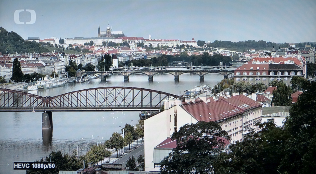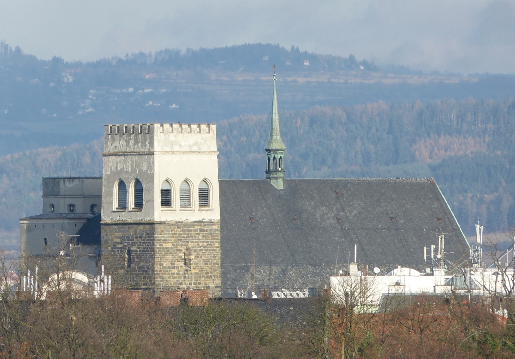 Vpravo kostel Sv. Michala, vlevo věž katedrály Sv. Václava