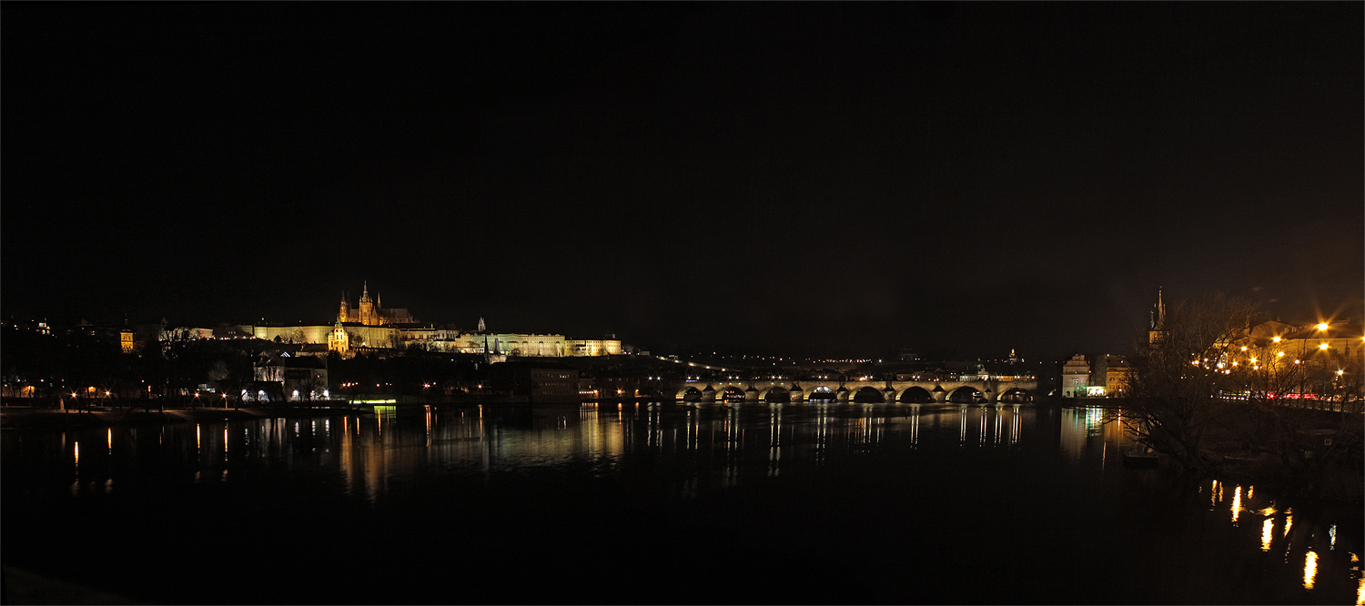 Juro, v současnosti by to toulání po Praze stejně moc uskutečnitelný z mé strany nebylo, ale stačí mi, že jsi k této akci ochotný. Ale až se doma vše stabilizuje ( manželka po operaci ), tak společný večerní výlet do Prahy jen uvítám a budu se těšit! Ve dvou se to lépe fotí!! To panorama je hezký a Hradčany k podobné fotce přímo vybízejí!