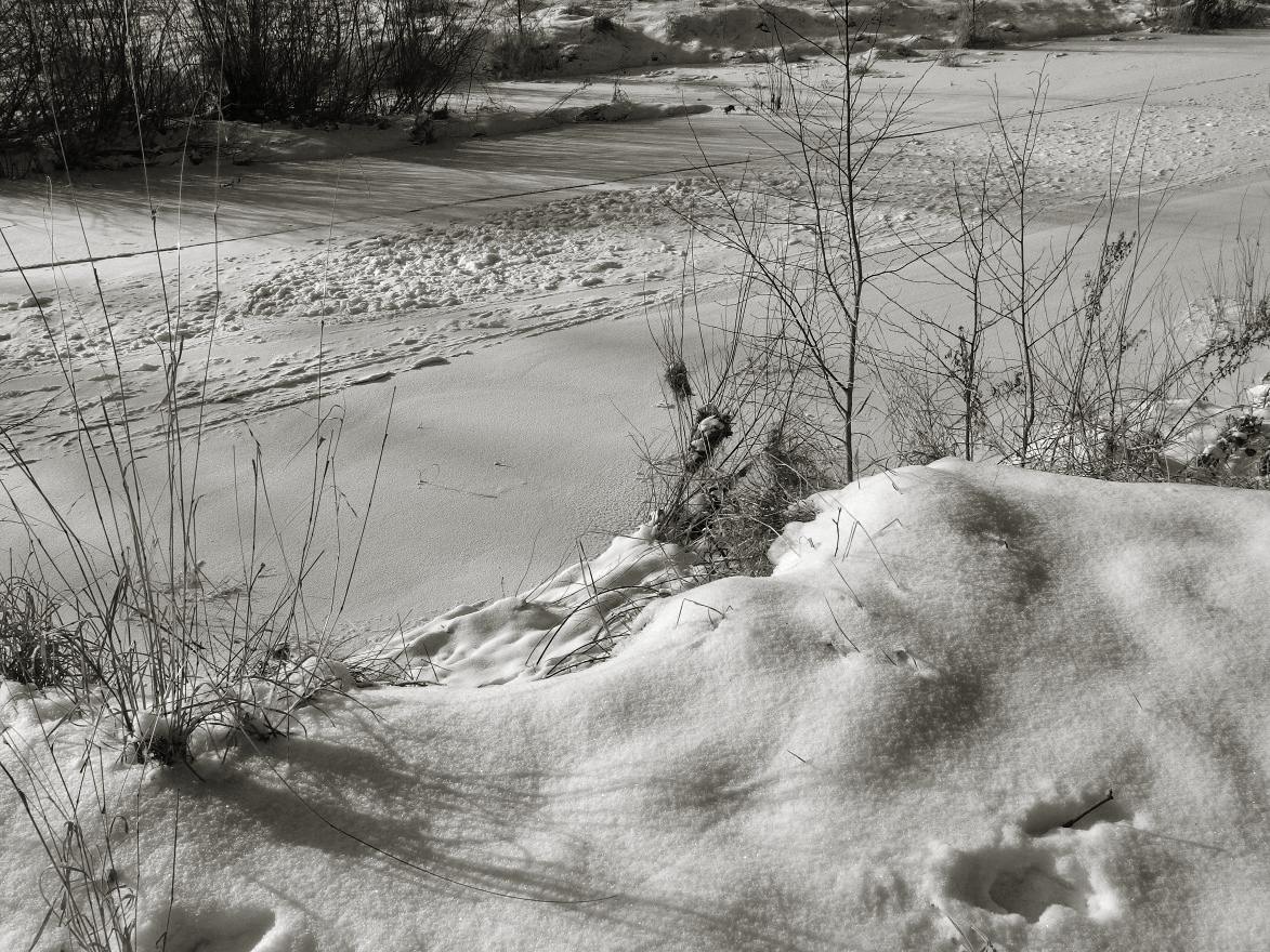 Tak dám kousek zamrzle řeky, focené z vlastních nohou. Mohla by to být ledová magistrála :D .