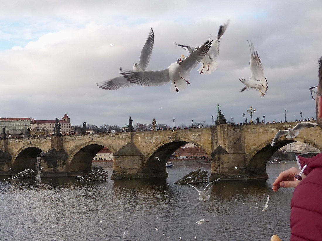 Tohle si člověk - ani s kamennou tváří nesmí nechat líbit, nechat si sednout racka na hlavu :o, on si určitě nebude brát servítky ani jiný papír co v minulosti nebýval. Jinak je jejich focení dost zajímavé -bylo to 5.února, pokusil jsem si je zachytit znovu a trochu jinak minulý týden, ale nějak tam žádní nebyli :?