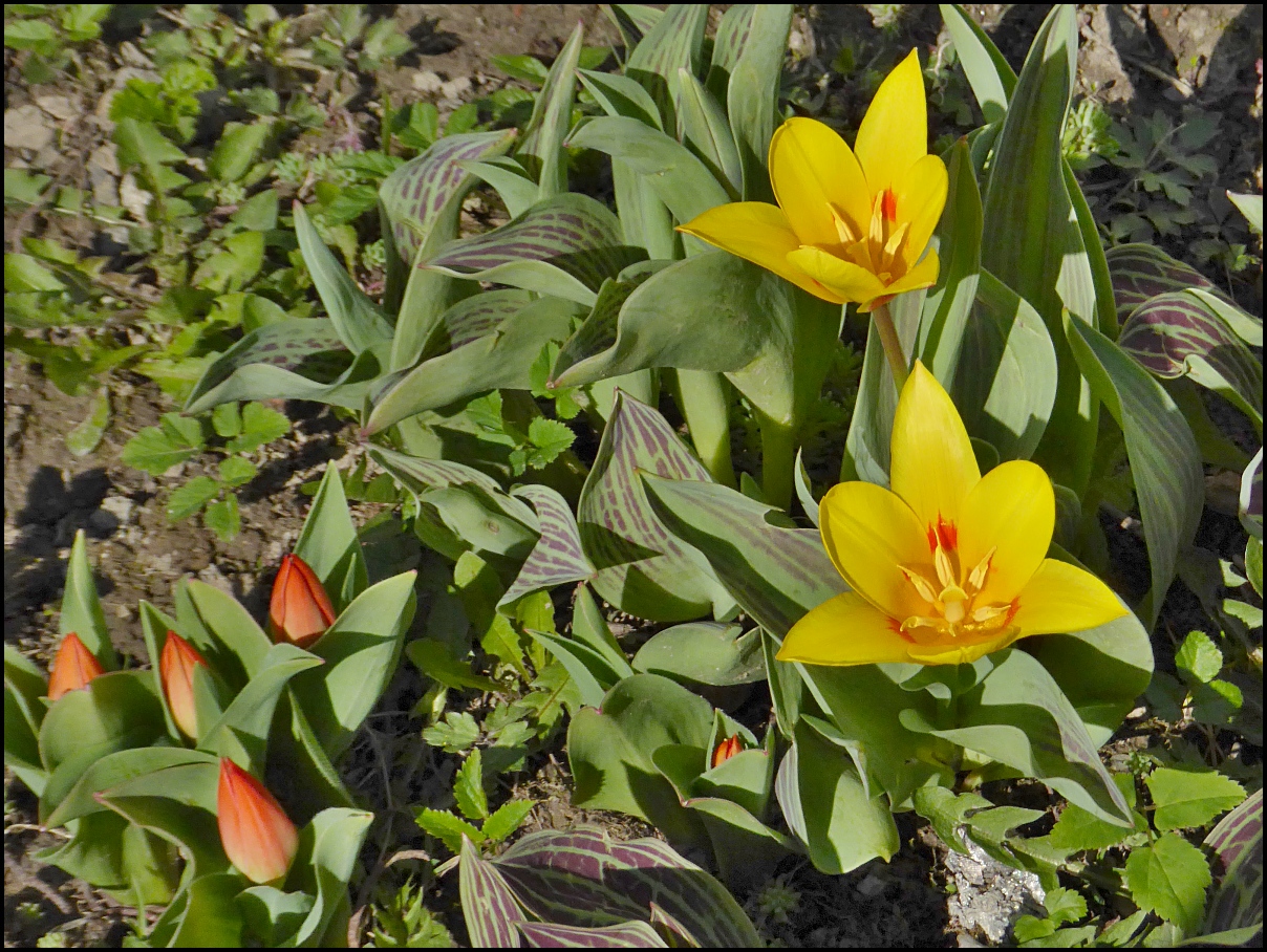 Na zahrádce ženě rozkvetly minitulipány.